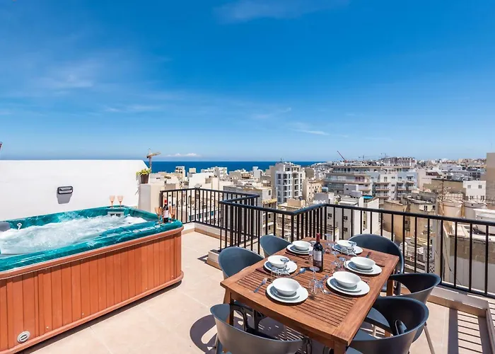 Seashells Sea View Penthouse With Private Hot Tub & Large Sunny Terrace With Stunning Views - By Getwaysmalta
